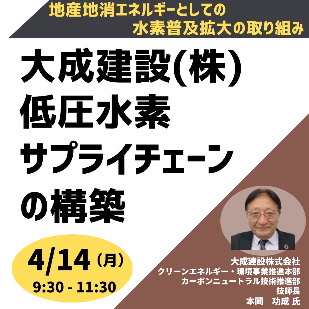 【JPIセミナー】「大成建設(株)が拓く水素社会 低圧水素サプライチェーンの構築とEMS実証の最前線」4月14日(月)開催