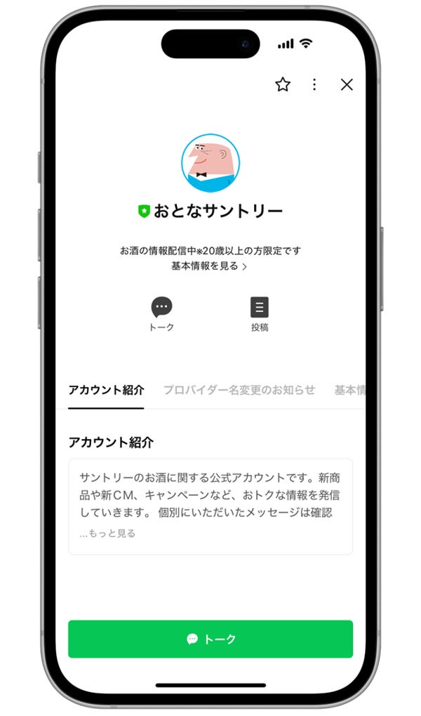 ▼サントリーLINE公式アカウント「おとなサントリー」について