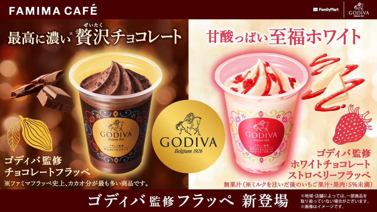 「ゴディバ監修チョコレートフラッペ」は、2021年から毎年期間限定で販売しており、4年目となる今年はファミマフラッペ史上、カカオ分が最も多く濃厚なチョコレート味に仕上げました。さらに、今年の新フレーバーとなる「ゴディバ監修ホワイトチョコレートストロベリーフラッペ」は、ミルキーでコクのあるホワイトチョコレート味のかき氷に、ホワイトチョコレートチップ、ストロベリーソースを配合した爽やかな味わいが特長です。