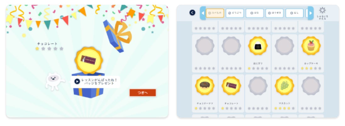 また、受講生がレッスンに取り組むと「バッジ」「ゲームチケット」を提供します。受講生の頑張りを可視化することで自己肯定感を育み、学びの意欲を高める仕組みになっています。