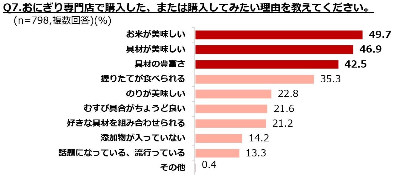 ・専門店で購入してみたい理由は「米が美味しい」「具材が美味しい」「具材の豊富さ」がTOP3。