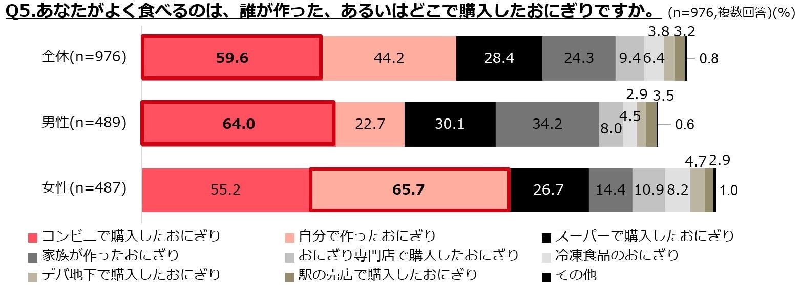 ・購入場所は全体では「コンビニ」が6割でトップ、女性は「自作」がトップとなる。