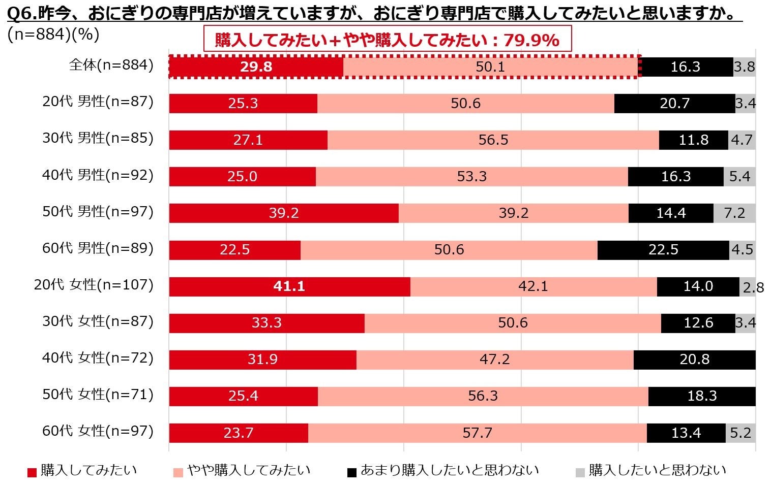 ・おにぎり専門店で購入してみたい人(「購入してみたい」+「やや購入してみたい」)は8割。