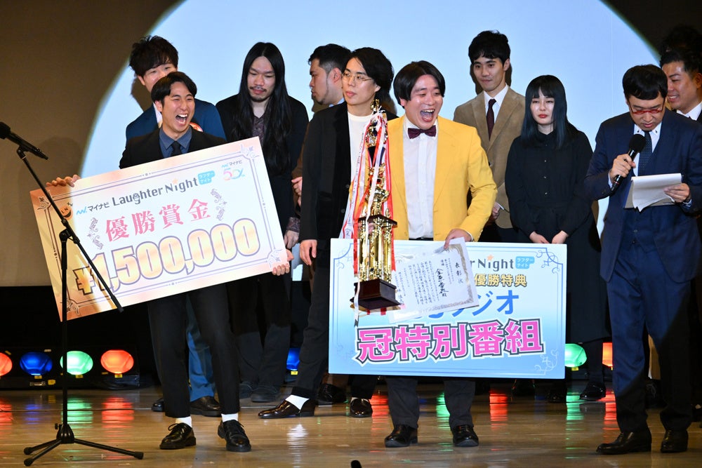 TBSラジオ『マイナビ Laughter Night』の第9回チャンピオンLIVEが、本日11月11日(土)に東京・一ツ橋ホールにて行われ、南海キャンディーズ・山里亮太がMCを務める中、12組がネタを披露しました。客席投票と、オンライン配信での投票の結果、金魚番長が優勝し、TBSラジオの冠特番出演権に加えて、株式会社マイナビの創業50周年を記念して例年より「50万円」増額となった賞金150万円を獲得しました。