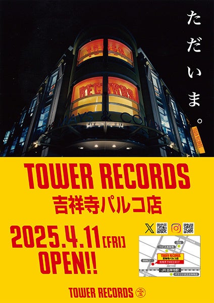 タワーレコード株式会社(本店所在地:東京都渋谷区、代表取締役社長:嶺脇育夫)は、4月11日(金)に71店舗目となる新店「タワーレコード吉祥寺パルコ店」を出店します。