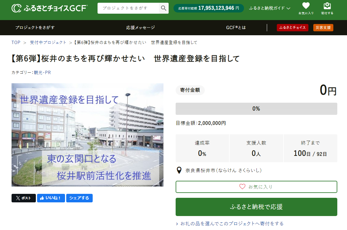 奈良県桜井市とふるさとチョイス、ふるさと納税制度を活用したガバメントクラウドファンディング®で、桜井市の玄関口・桜井駅前の活性化を目的としたプロジェクトを開始