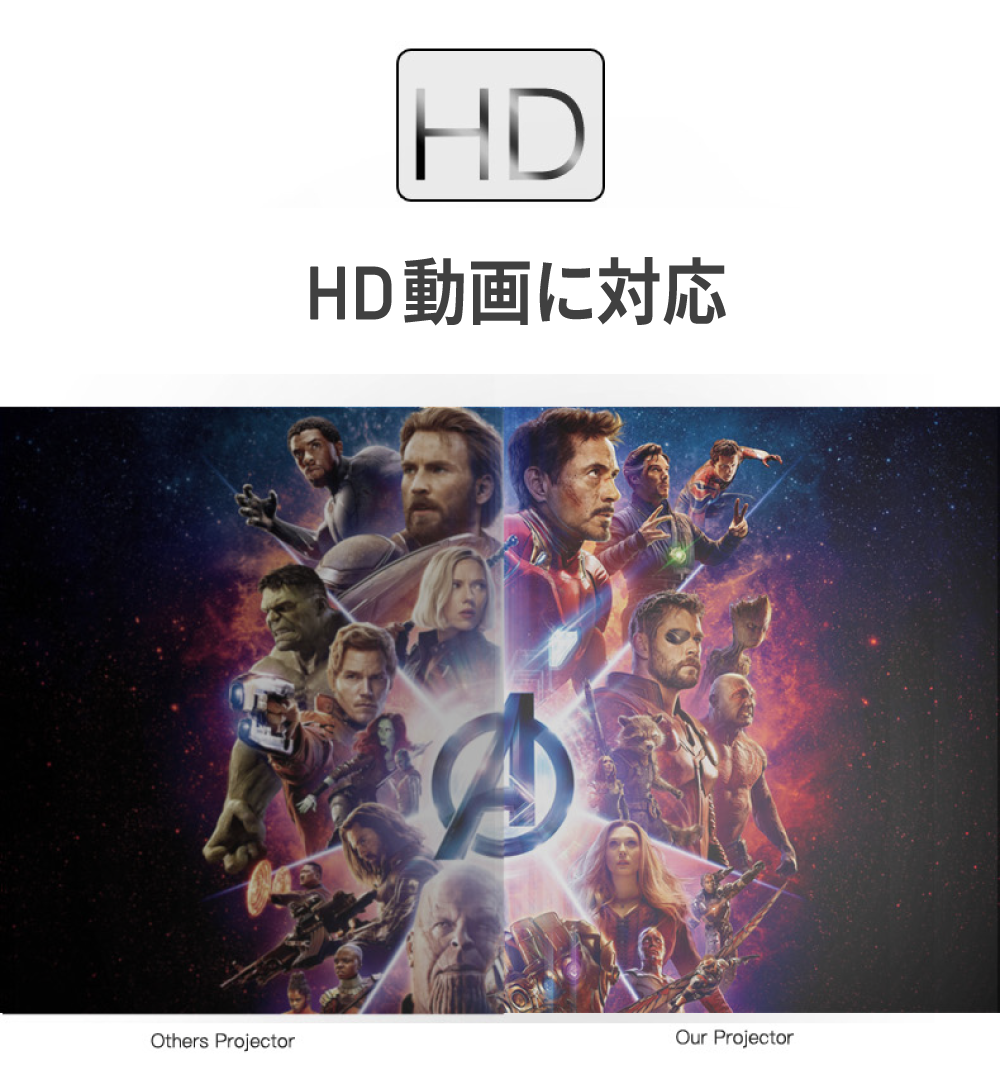 ミニプロジェクターでありながら100インチまでの大画面で投影でき、手軽に迫力のある映像を楽しめます!