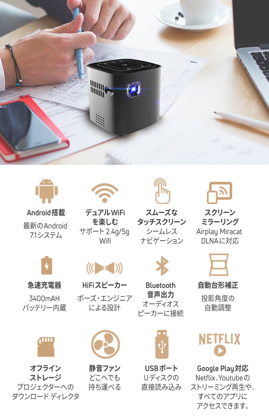 2WAYプロジェクター&モバイルバッテリーで便利!【超小型/30〜100インチの大画面/内蔵スピーカー/モバイルバッテリー/3400MAHバッテリー/LEDライト】