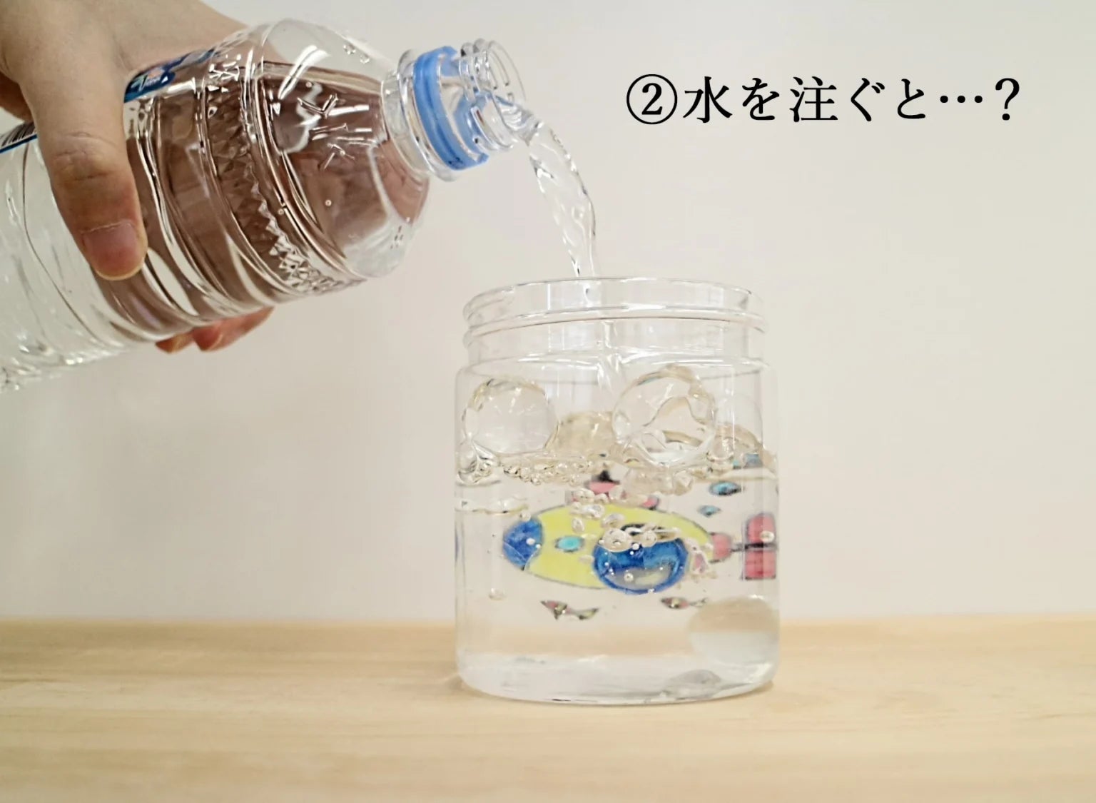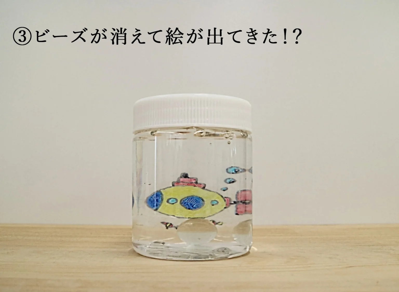 「マジカルビーズボトル」の実験を通して、自分の手で作る喜びや、ボトルの様子を観察し、見えていたものが見えなくなる不思議さを体験します。
