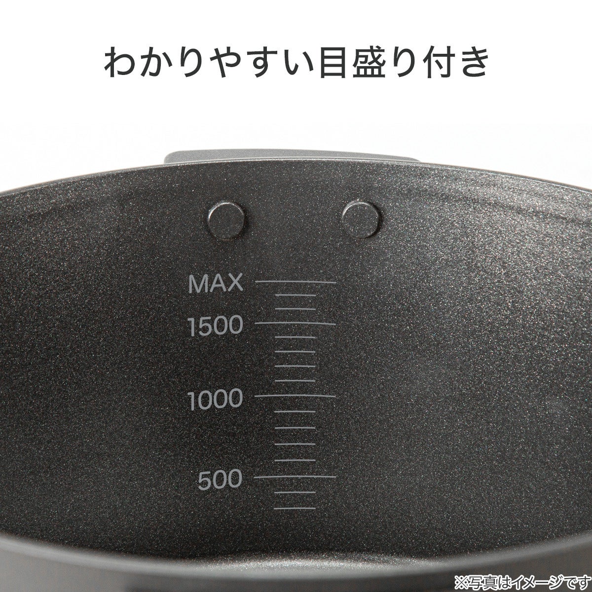 煮る、蒸す、茹でる、揚げる、炒める、炊く、温める、保温、和える、ガス火調理の10種の調理をこれ1台で行うことが出来ます。なべは約1.8Lと大容量で、コーティングが施されており、丸洗いできるのでお手入れも簡単。さらに、ガス火調理対応なので、ガスコンロで調理した後にヒーター本体でなべを保温することも可能です。