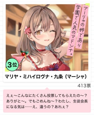 ロシデレ初の公式人気投票、たくさんの投票をありがとうございました。