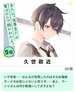 政近は……うん、偉い。男でその順位にいるのは偉い。偉いし、有難いです。男主人公にちゃんと人気があるのは原作者としてとても嬉しいことです。