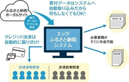 「ふるさと納税システム」は、寄附者情報や返礼品の管理、各種関連書類の作成等を、自治体職員様が正確、簡単に行うことができるシステムです。