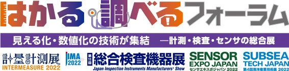 産経新聞社(東京都千代田区)と一般社団法人日本計量機器工業連合会(東京都新宿区)、一般社団法人日本検査機器工業会(東京都千代田区)は9月14日(水)から3日間、東京ビッグサイト西1・2ホール(東京都江東区)で「はかる・調べるフォーラム」の総合タイトルの下、「INTERMEASURE 2022(第30回計量計測展)」「JIMA 2022(第11回総合検査機器展)」「SENSOR EXPO JAPAN 2022」「SUBSEA TECH JAPAN 2022」の4展示会を開催します。リモート勤務の増加により、実機を見たり触れたりする機会が減っている昨今、直に説明を聞き、製品・技術の良さを体感できる場として、ぜひご活用ください。
