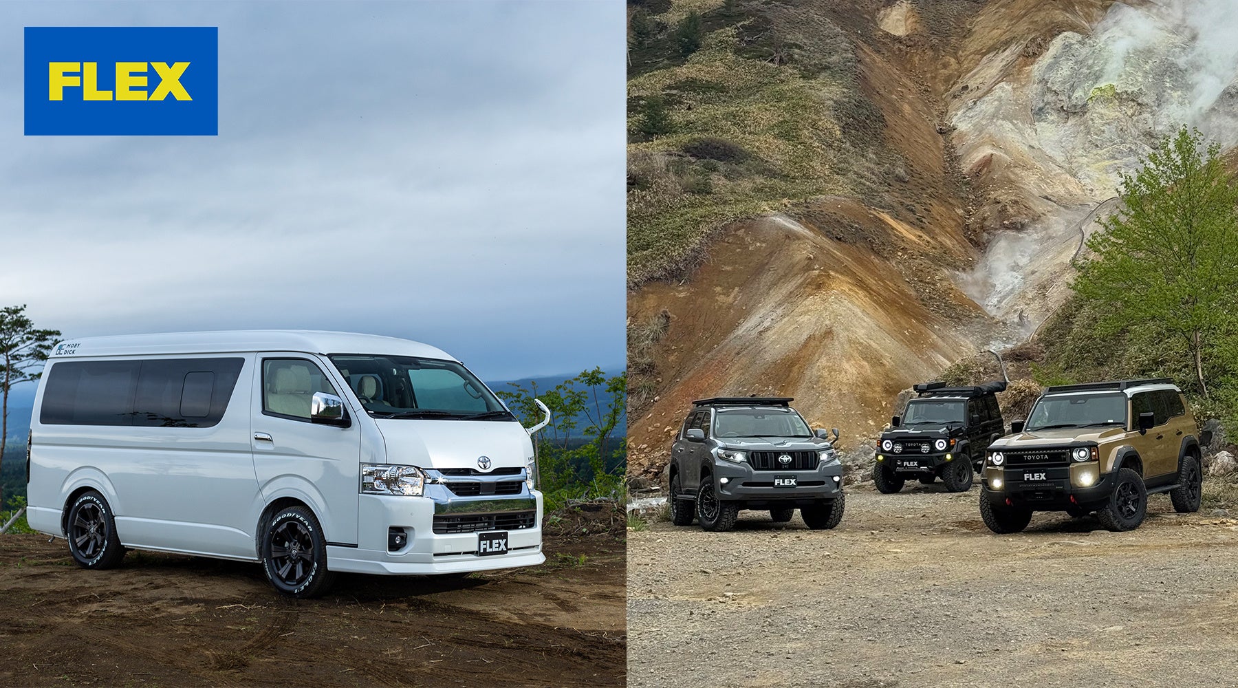ハイエース・ランクルを中心としたカスタム車両を販売するFLEXが、カスタムアップされたハイエース・ランクルを展示・販売会を実施。また国内初上陸のランクル系カスタムパーツ「IRONMAN」の展示を実施。