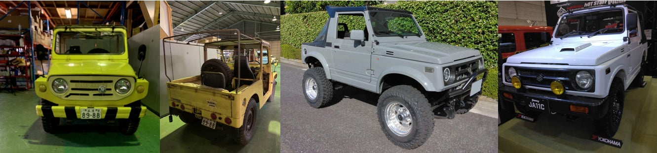 スズキ・ジムニーの脈々と続く歴史を感じさせる車両を展示しているのが「JIMNY CLASSICS」。農家の納屋から発掘された1969年生まれの初代ジムニーLJ10からレアな左ハンドル輸出モデルのSJ40サムライ、新品同様にレストア&カスタマイズされたJA11、そして話題の新型ノマドJC74の完全ノーマル車を展示!