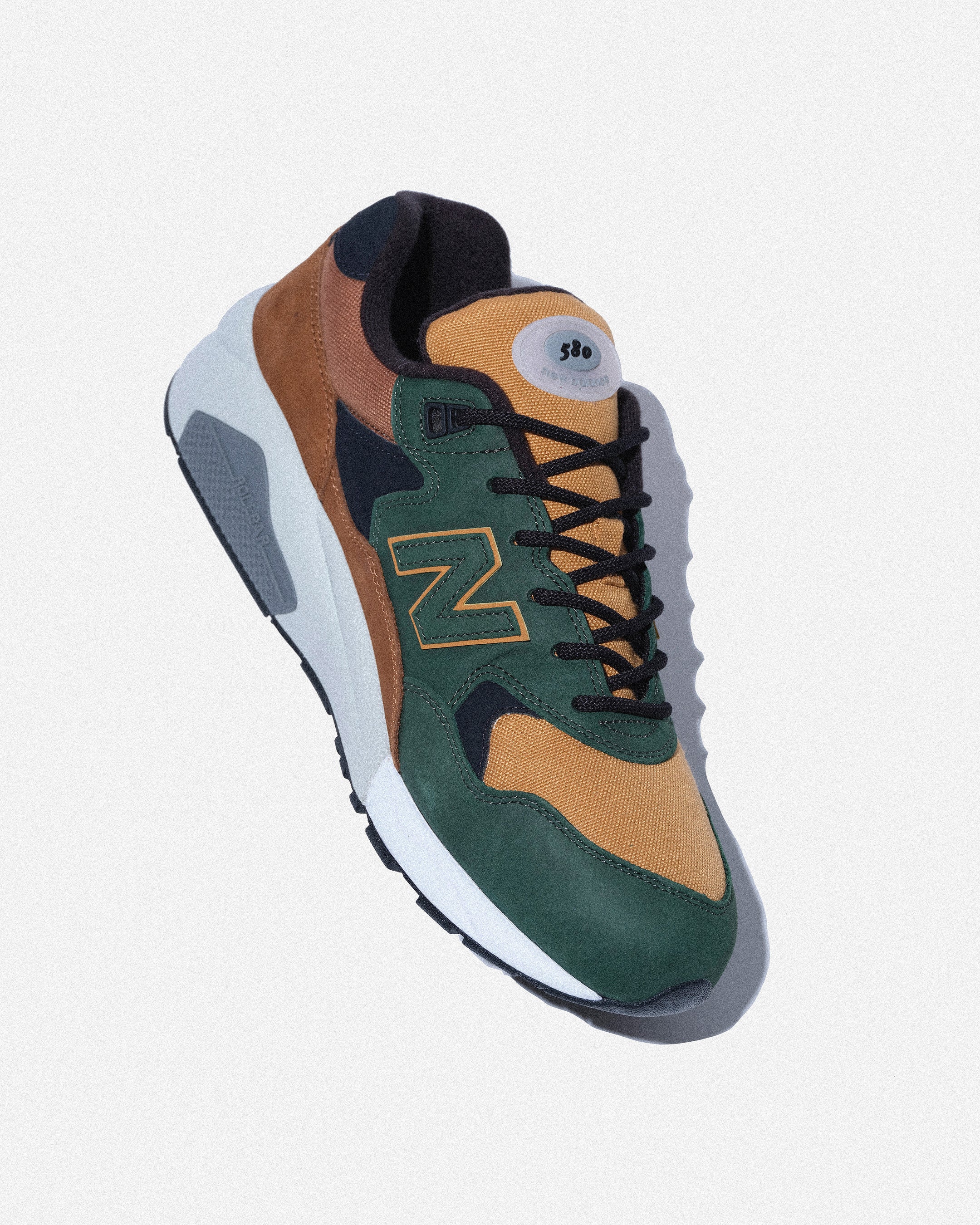 当時搭載されていた安定性をもたらす「ROLLBAR(ロールバー)」をミッドソールに搭載。ラストはニューバランスのスタンダードな「SL-1」ラストに変更され、過去の「580」よりスリムな印象に。オリジナルカラーをミックスした配色がヴィンテージ感を漂わせます。