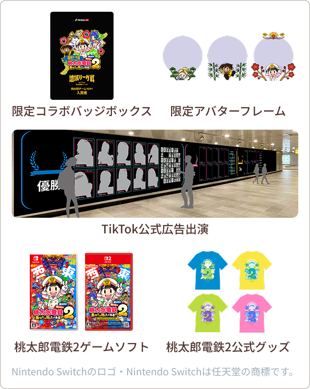 上位チームかつ入賞者にはTikTok LIVEと『桃鉄2』のコラボグッズなど豪華特典をプレゼントします。