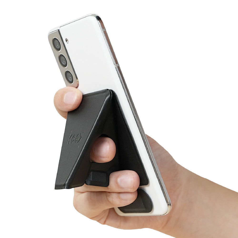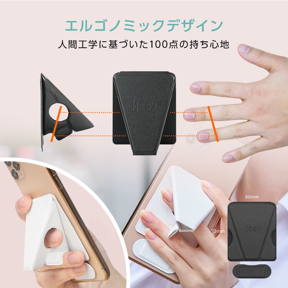 人の手に吸い付くようなフィット感、スタンドとしての安定感がデザインされた、究極のグリップスタンドです。