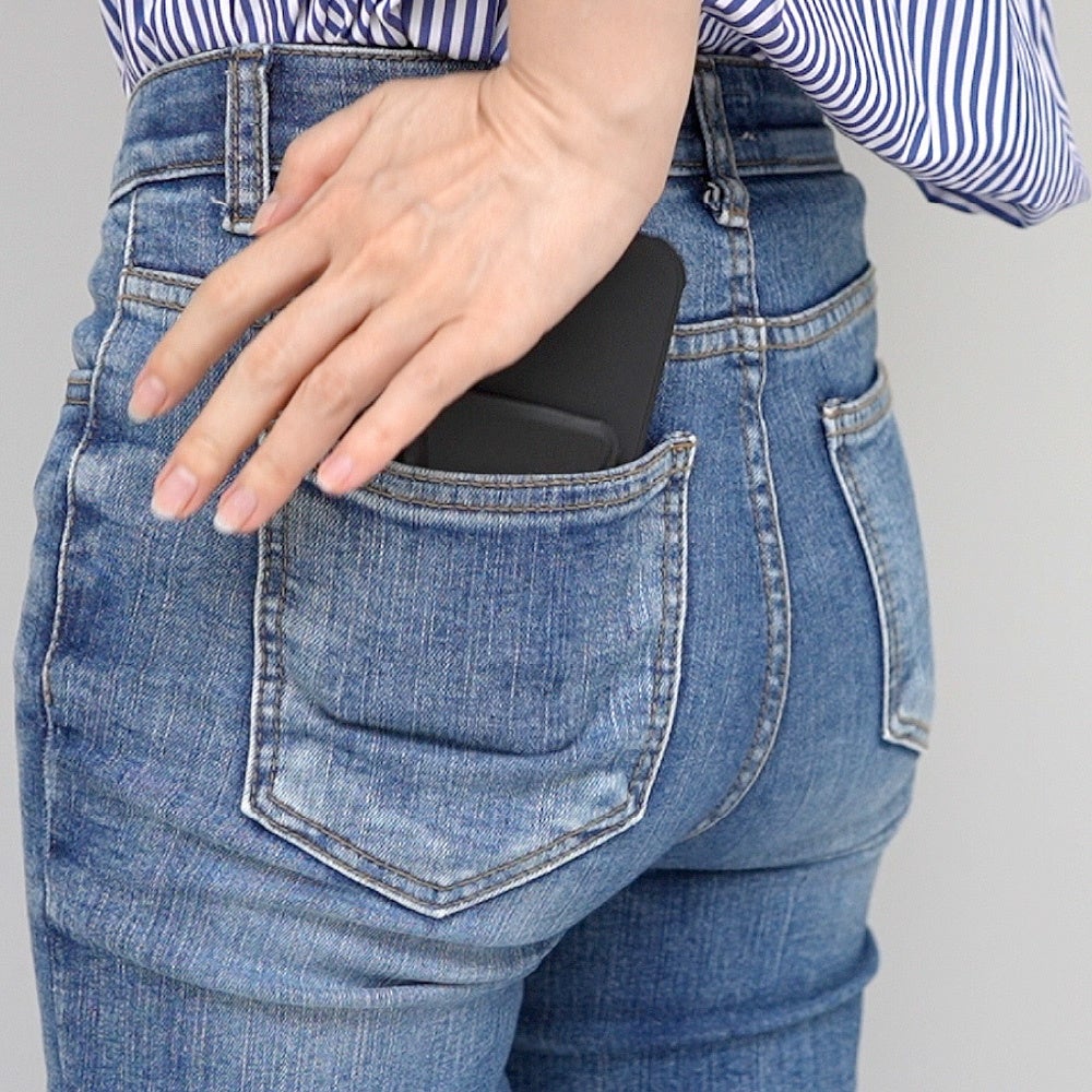 超薄型設計ですのでタイトなパンツのポケットにも引っかかることなく、シルエットが出にくくなっています。(薄さ:5mm)