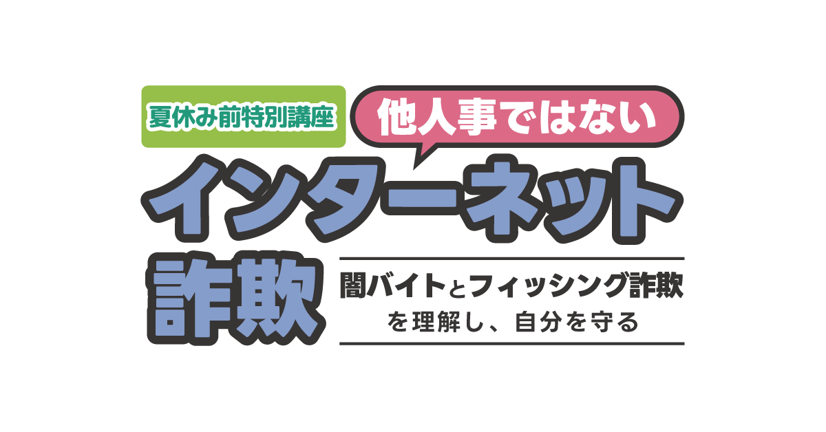 昨今、インターネットを通じて巧妙に仕組まれた闇バイトやフィッシング詐欺が増加し、学生を狙う手口が横行しています。特に夏休みを迎える7月は、学生にとって自由な時間が増える機会である一方、インターネット詐欺などのサイバー犯罪の標的になりやすい時期となり、こども家庭庁では「青少年の非行・被害防止全国強調月間」としています。