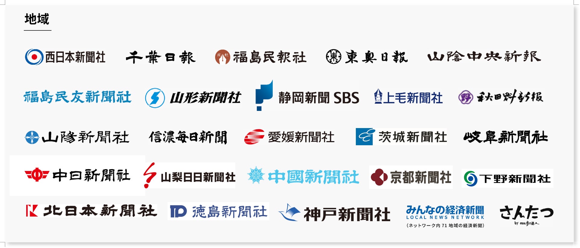 【新聞社を含む地域情報関連のパートナーメディア一覧】