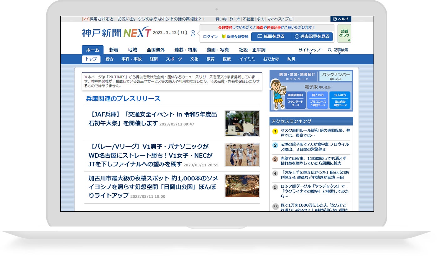 1.神戸新聞ニュースサイト「神戸新聞NEXT」に兵庫県に関するプレスリリースコンテンツを掲載