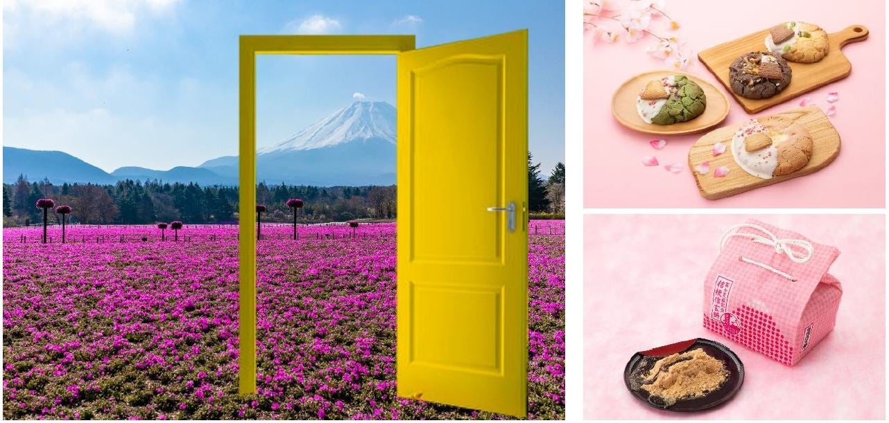 さらに、富士山の溶岩をイメージした「溶岩からあげ」や桔梗信玄餅をトッピングした「信玄餅ソフト」、ふわふわのパンに唐揚げやポテトサラダといったおかずのほか、あんこやティラミスといったスイーツを挟んだ9種類から具材が選べるこっぺぱんなどのグルメをお楽しみいただけます。また、芝桜をイメージしたピンクのパッケージが可愛らしい「桔梗信玄餅」や「フジヤマクッキー」といったここでしか買えないお土産も多数取り揃えております。