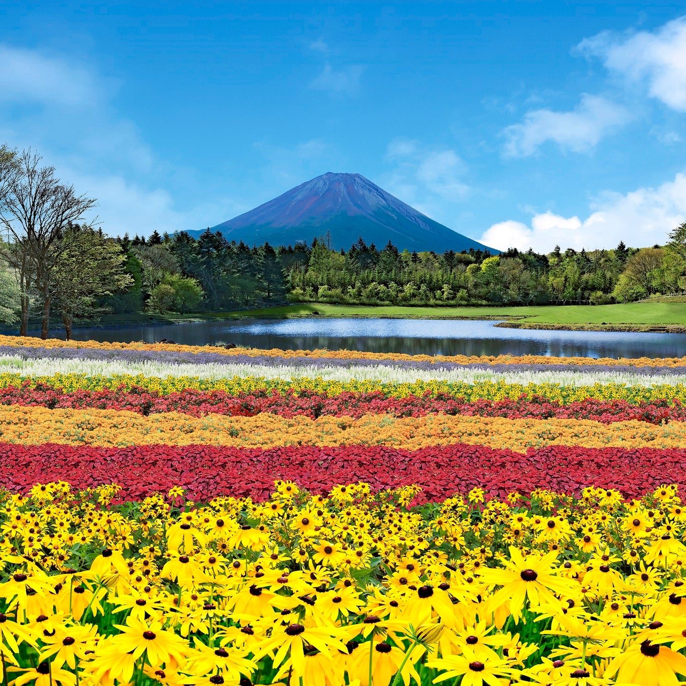 富士本栖湖リゾートでは、ジニアやサルビア、ルドベキアなど10種類のカラフルな花々と緑が美しい夏の富士山との共演が楽しめる「虹の花まつり」を本年の夏より初開催いたします。春の「富士芝桜まつり」とはまた違った絶景に、ぜひご注目ください。