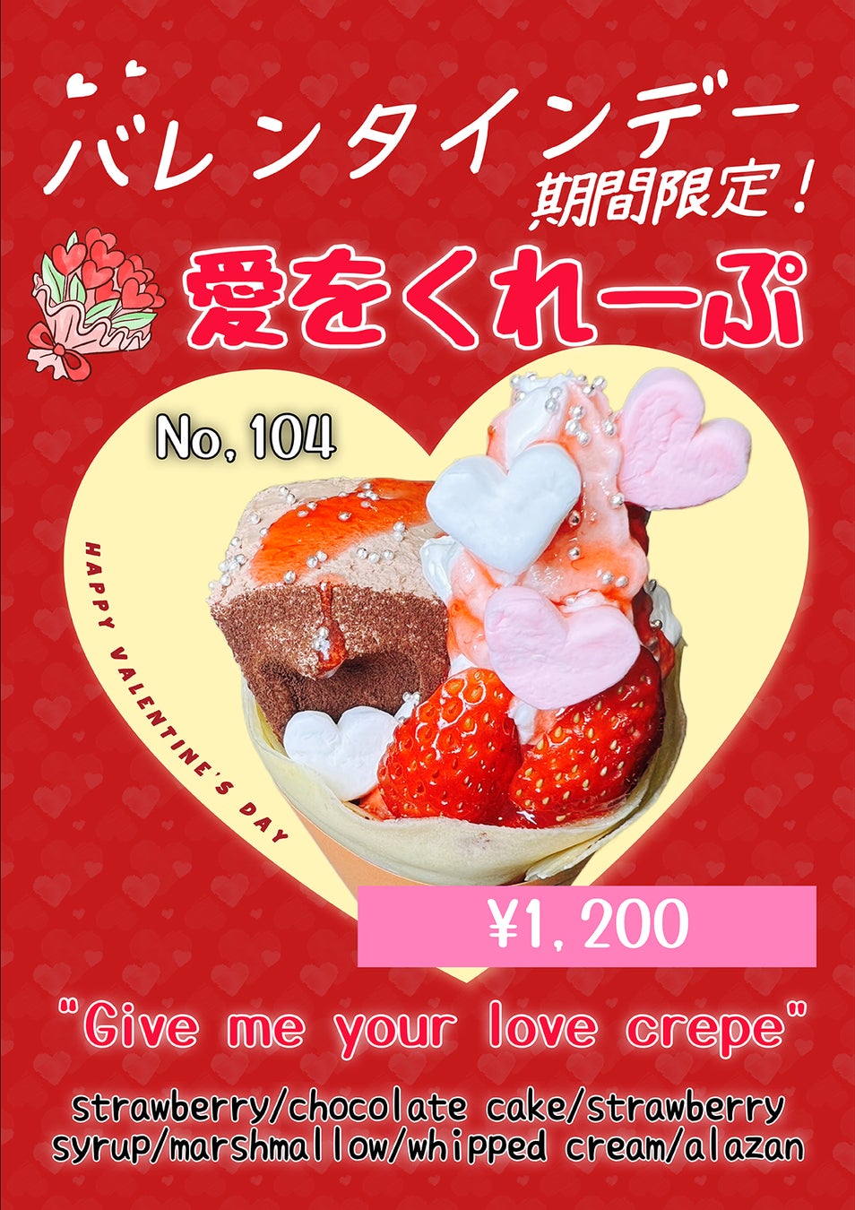 【原宿クレープ】Crepes原宿すまいる”バレンタイン特別メニュー”【愛をくれーぷ】期間限定販売!!