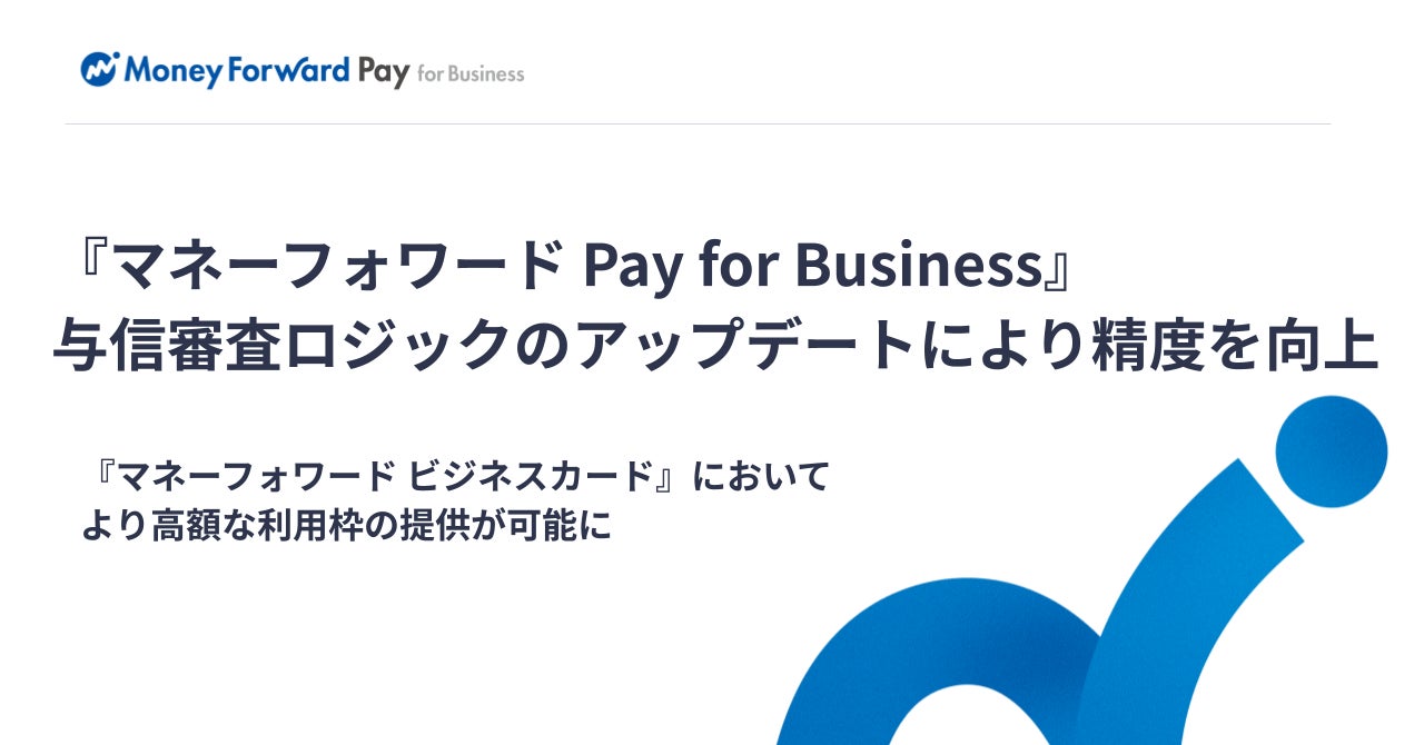 株式会社マネーフォワードは、SaaS基盤を活用したFintechサービス『マネーフォワード Pay for Business』の決済手段として提供している法人・個人事業主向けのビジネスカード『マネーフォワード ビジネスカード』において、法人における利用枠の与信審査ロジックをアップデートし、審査精度を向上しました。これにより、従来よりも高額な利用枠の提供を実現し、ユーザーの高額決済のニーズに対応します。