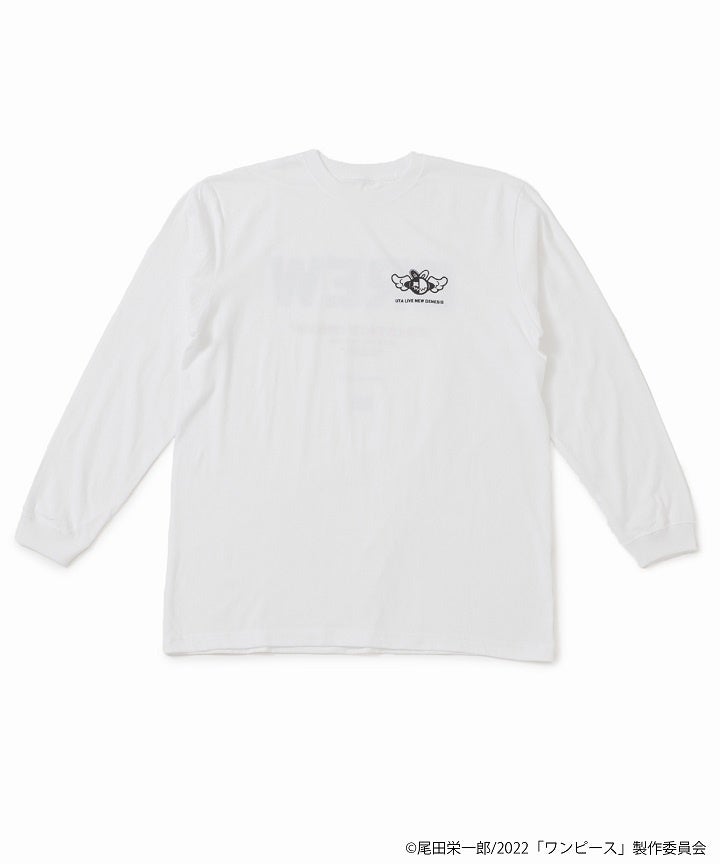 ウタが出演する『UTA LIVE NEW GENESIS』のライブグッズをイメージしたアイテムを制作。ウタをプリントした、ミュージシャンTシャツ、エンブレムやキャッチコピーをプリントしたロックバンドTシャツをデザインしました。また、ライブスタッフ専用のアイテムをイメージした、スタッフ用ロンTも制作。