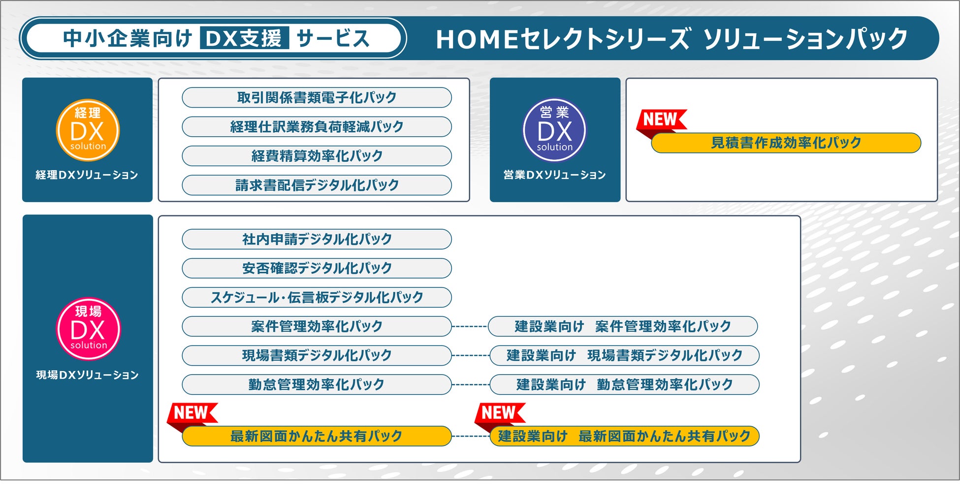 中小企業向けDX支援サービス「HOMEセレクトシリーズ」に“見積書作成効率化パック”と“最新図面かんたん共有パック”を追加