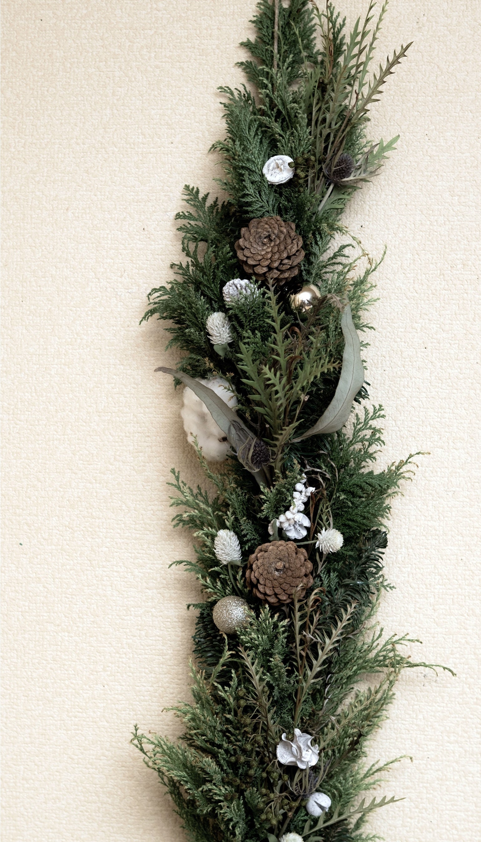テーブルや棚にランナー風に飾っても、壁からガーランドやスワッグの様に飾ってもお楽しみいただけます。
