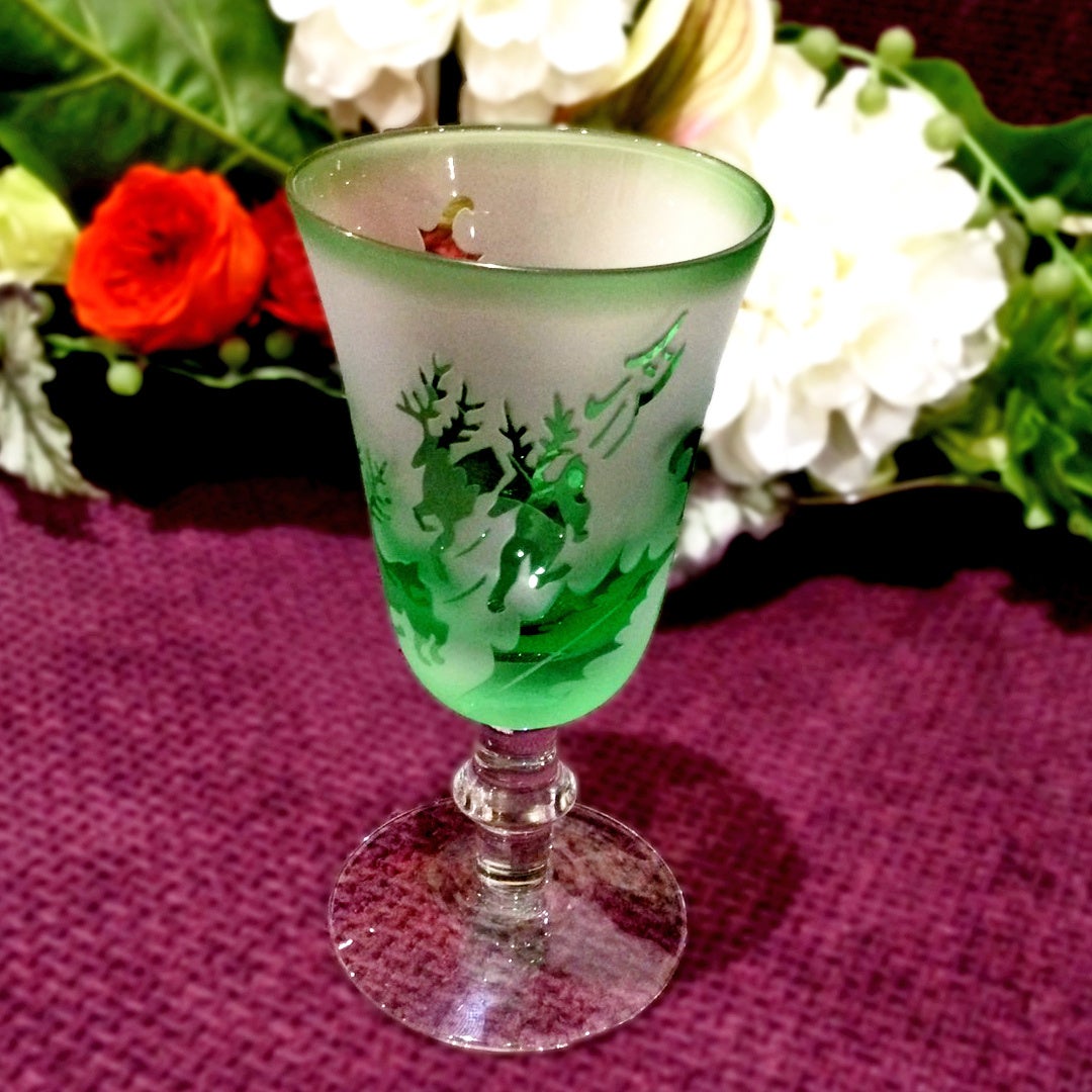 サンドブラストの技法で、トナカイのモチーフの綺麗なピルスナーグラスを作ります。ガラスの色はクリスマス