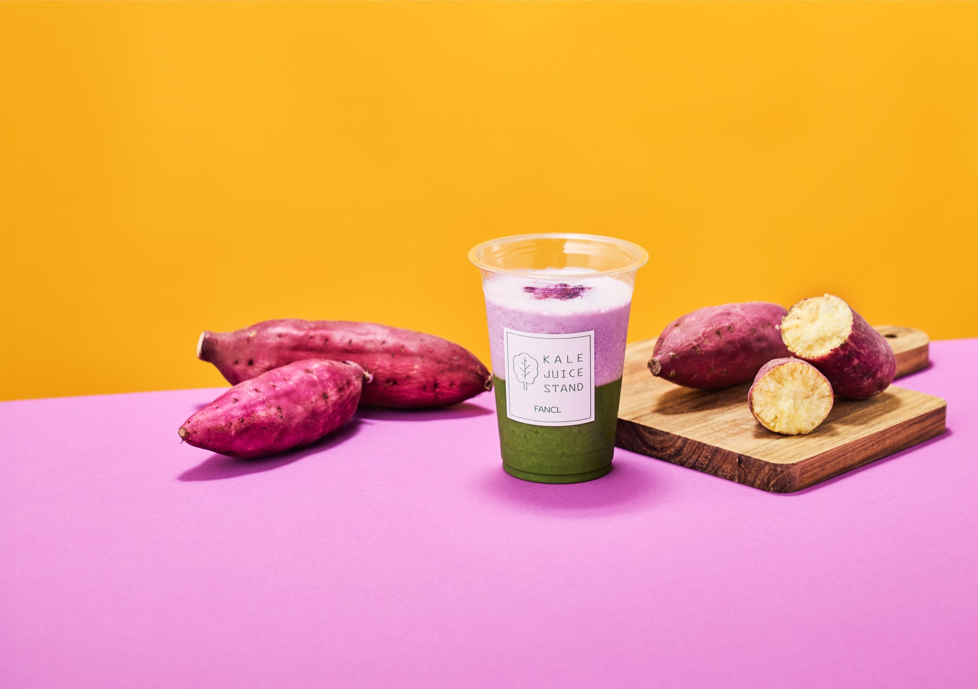 株式会社ファンケルは本日10月1日(火)から、ジューススタンド併設店舗「ファンケル 福岡天神地下街店」にて新メニュー「ケール&おいもSOYスムージー」を期間限定で販売します。秋の季節にぴったりな、「さつまいも」と「むらさきいも」の両方を使用した優しい甘みのドリンクです。
