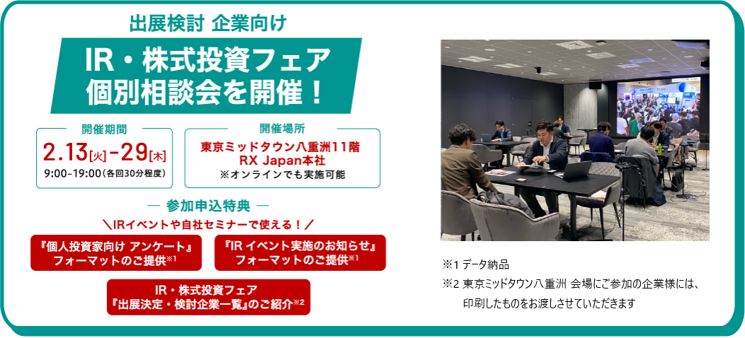 IR・株式投資フェア 出展検討企業向け 個別相談会のお知らせ