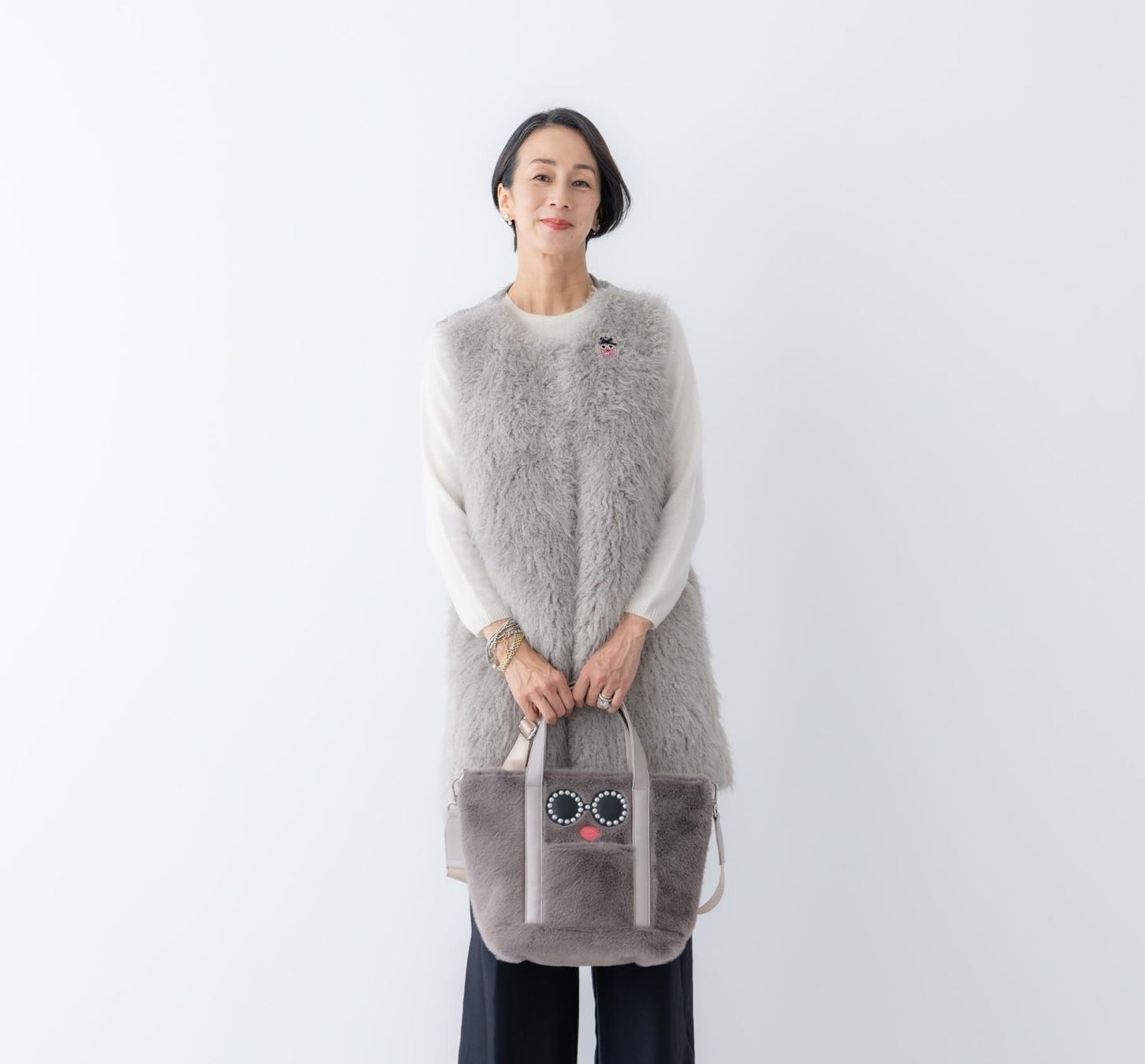 江里子さんのお友達がデザイナーの「アヴェクデュクレ」のバルーン袖ブラウスの新柄、お気に入りのイタリアブランド「クイリシア」のカラフルニット、「カシュミー」のカシミヤ・バイカラーミニマフラー、「アジョリー」のファーバックなど、わくわくするアイテムが続々と登場。