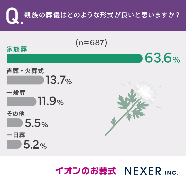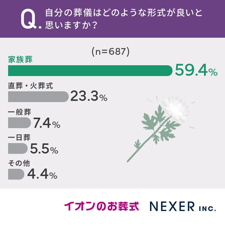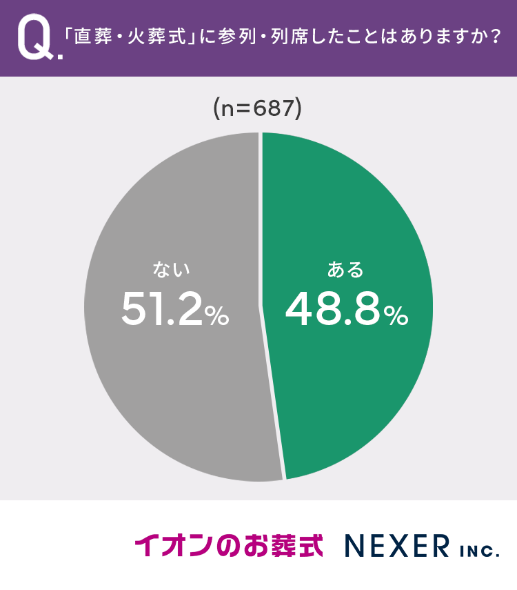 そこで今回は『イオンのお葬式』と共同で、事前調査で「直葬・火葬式を知っている」と回答した全国の男女687名を対象に「葬儀の形式」についてのアンケートをおこないました。