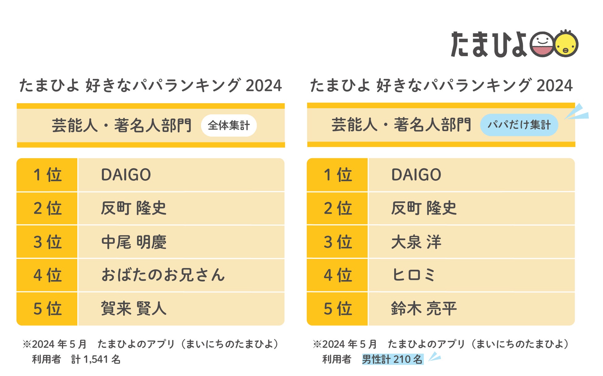 2024年6月16日は父の日 「たまひよ 好きなパパランキング2024」発表! 子育て世代の好きなパパ