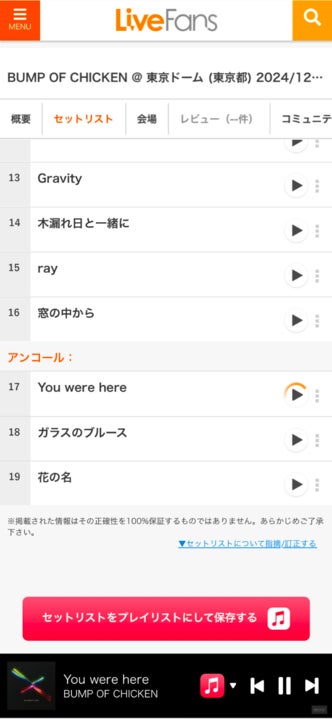 思い出のライブの振り返りやついさっき盛り上がったばかりのライブの復習にも、ぜひLiveFansのセットリストで音楽ライフをよりお楽しみください。