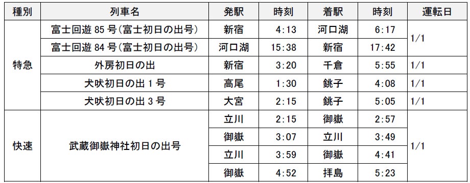 初詣や初日の出観賞に便利な臨時列車を運転します。