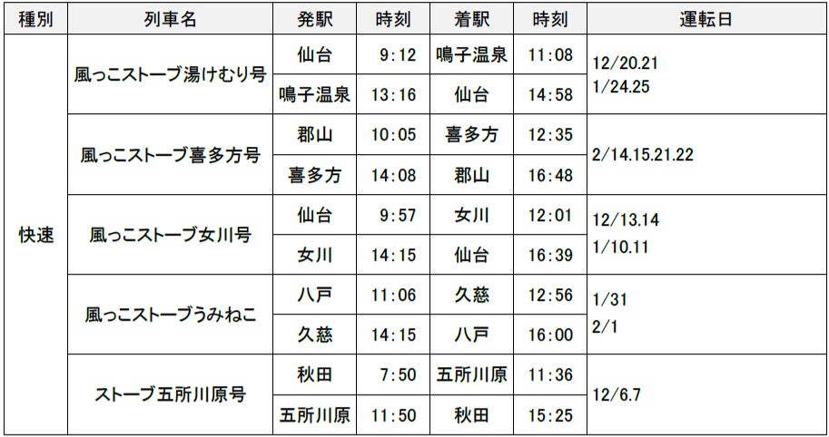 ◆昔懐かしい「だるまストーブ」を使用した臨時列車を東北各地で運転します。暖かい車内から沿線の冬景色をお楽しみください