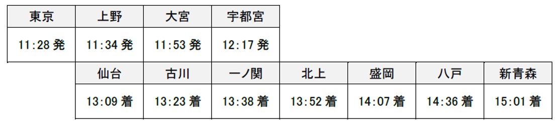 □途中停車駅:上野・大宮・宇都宮・仙台・古川・一ノ関・北上・盛岡・八戸
