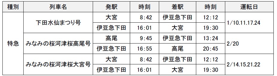 下田水仙まつり号 みなみの桜河津桜高尾・大宮号
