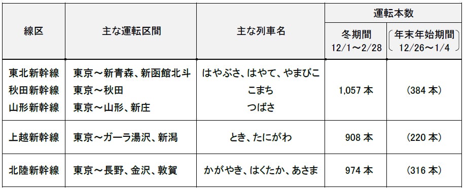 ※東北・秋田・山形新幹線のうち、併結して運転する列車は1本として計上しています。