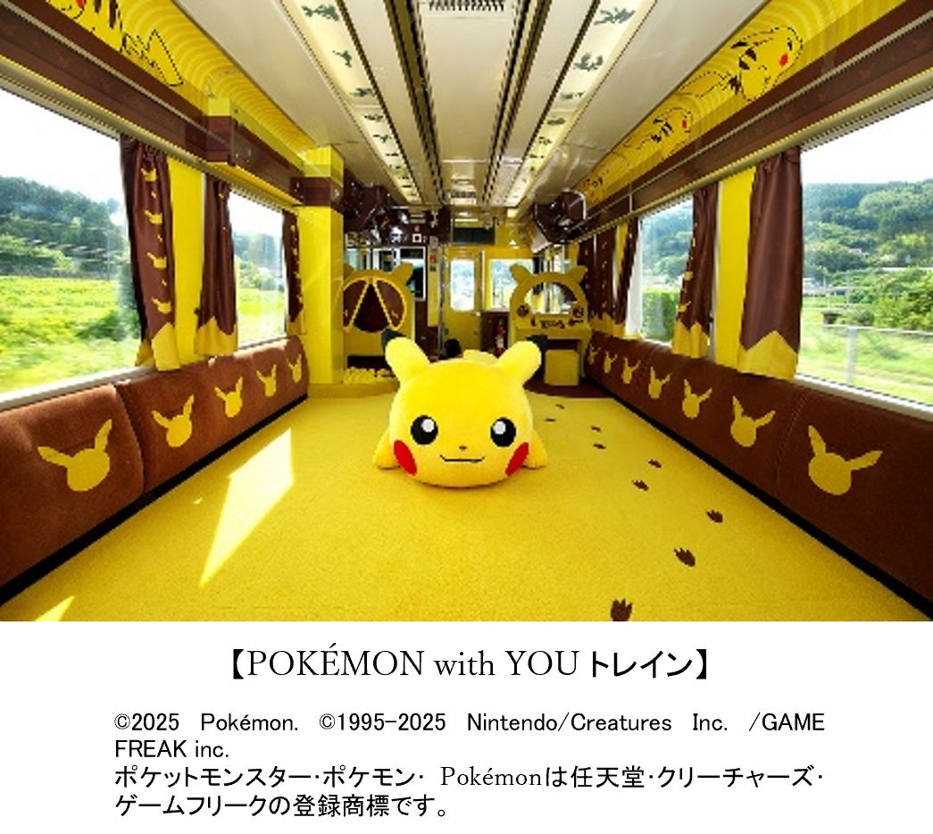 ◆「POKÉMON with YOU トレイン」は東日本大震災からの復興を目的に、大船渡線・山田線・釜石線の各路線で運転しています。「親子でピカチュウと楽しむ列車」でたくさんのピカチュウたちと一緒に、楽しいひとときをお過ごしください。