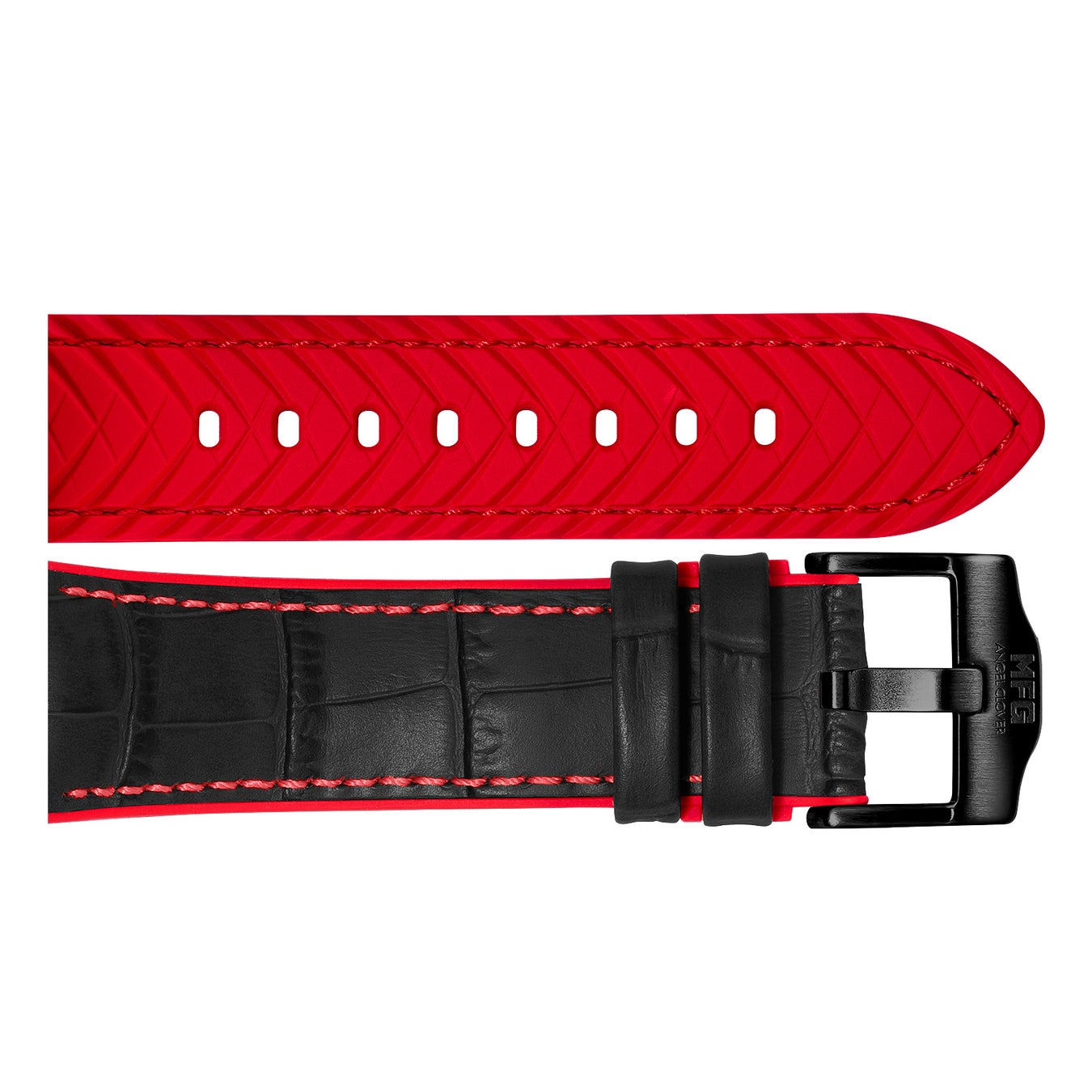 レザーの表面の裏にシリコンラバーを圧着させたハイブリッドベルトを採用。汗や水によってベルトの変形も防げるので、いつでも新鮮なデザインをキープできます。