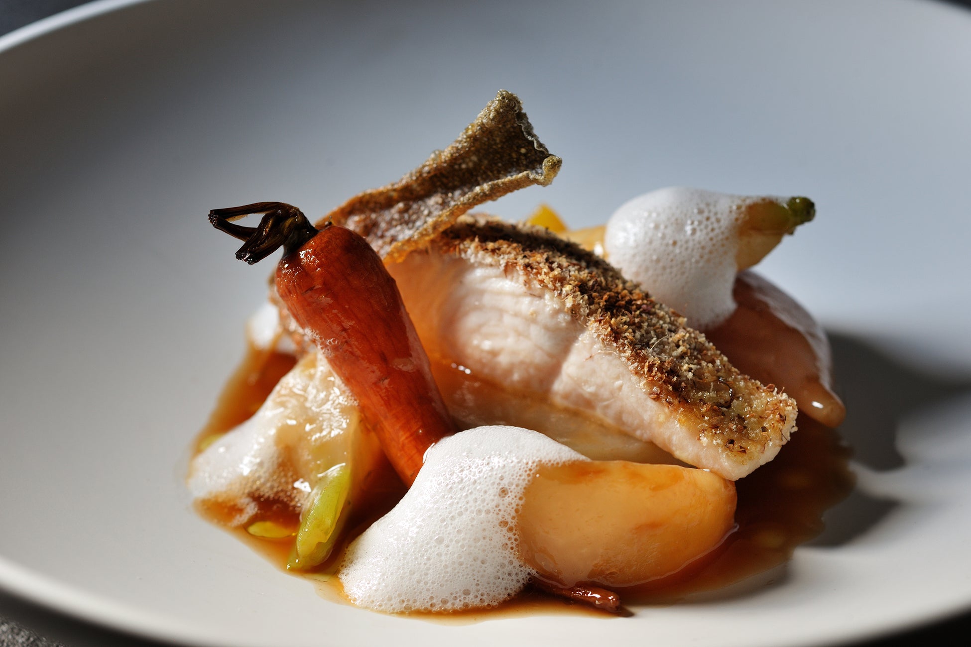 イタリア語で「ワインと野菜」を表す「Vino e Verdura(ヴィノ エ ヴェルデューラ)」をコンセプトに、「この地域ならではの食材との出会い」を提供しています。ワインを貯蔵するためのワインカーヴを表現した空間で、前菜からデザートまでこだわりの野菜を使用した料理を楽しむことで、八ヶ岳のテロワールを感じながら、ワインと野菜のマリアージュを心ゆくまで堪能できます。「Mie Ikeno 月香 Chardonnay 2023」を楽しむのにおすすめの料理は、冬限定ディナーコースで提供している「根菜とイワナのズッパ」です。冬に甘味が増すコールラビやカブといった根菜の滋味溢れる味わいを、木樽の風味が引き立て、また、活き活きとした酸味がアクセントになります。