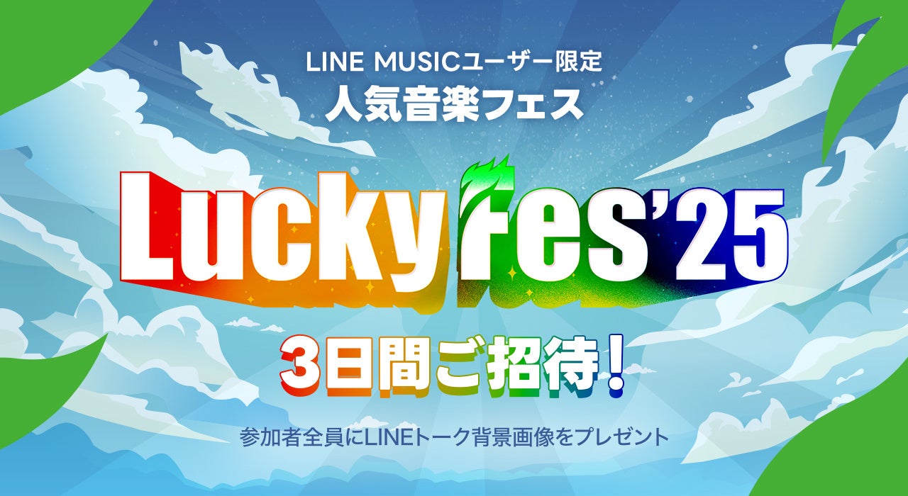 LINE MUSIC株式会社は、当社が運営する音楽ストリーミングサービス「LINE MUSIC」(iPhone・Android対応)において、本日7月16日(水)より、人気音楽フェス「LuckyFes’25」にご招待する、LINE MUSICプレミアムプランユーザー限定(無料体験を含む)のキャンペーンを開催します。